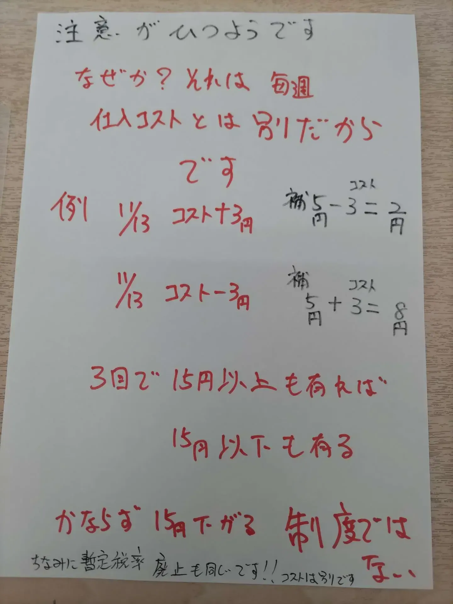 ちなみに10月30日~11月5日まで仕入が3円上げです。